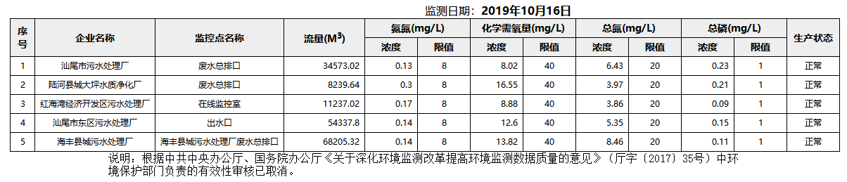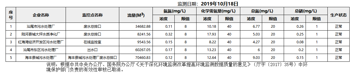 2019年10月14-20日汕尾市国控重点污染源废水企业自动监控数据报表