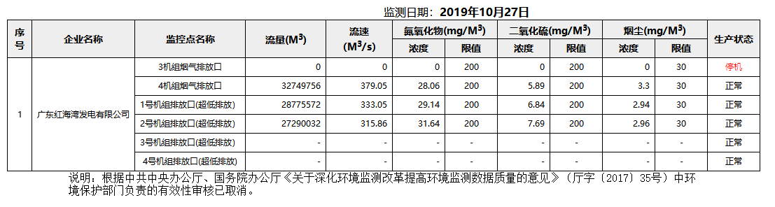 2019年10月21-27日汕尾市国控重点污染源废气企业自动监控数据报表