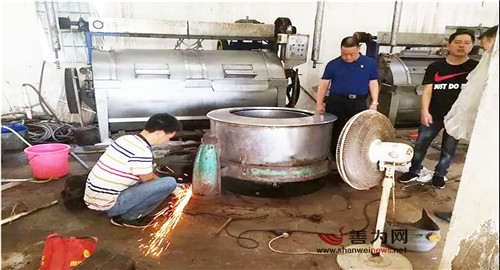 日前,红海湾开发区组织区住建与环保规划局等部门和东洲街道办事处,对东洲街道湖东村内无证经营的日昇造纸厂、亿达洗水厂进行拆除。图为工人正在拆除造纸厂设备。