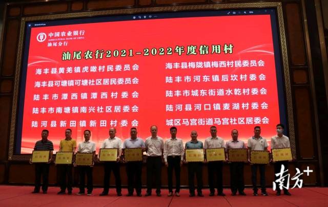 当天,海丰可塘社区居委会、海丰梅陇梅西村委会、海丰黄羌虎噉村委会、陆丰潭西村委会、陆丰河东后坎村委会、陆丰城东水乾村委会、陆丰南塘南兴社区居委会、陆河河口麦湖村委会、陆河新田村委会和城区马宫社区居委会10个村(社区)入选汕尾农行信用村(社区)。活动现场,以上10个村(社区)的代表上台接受了授牌。