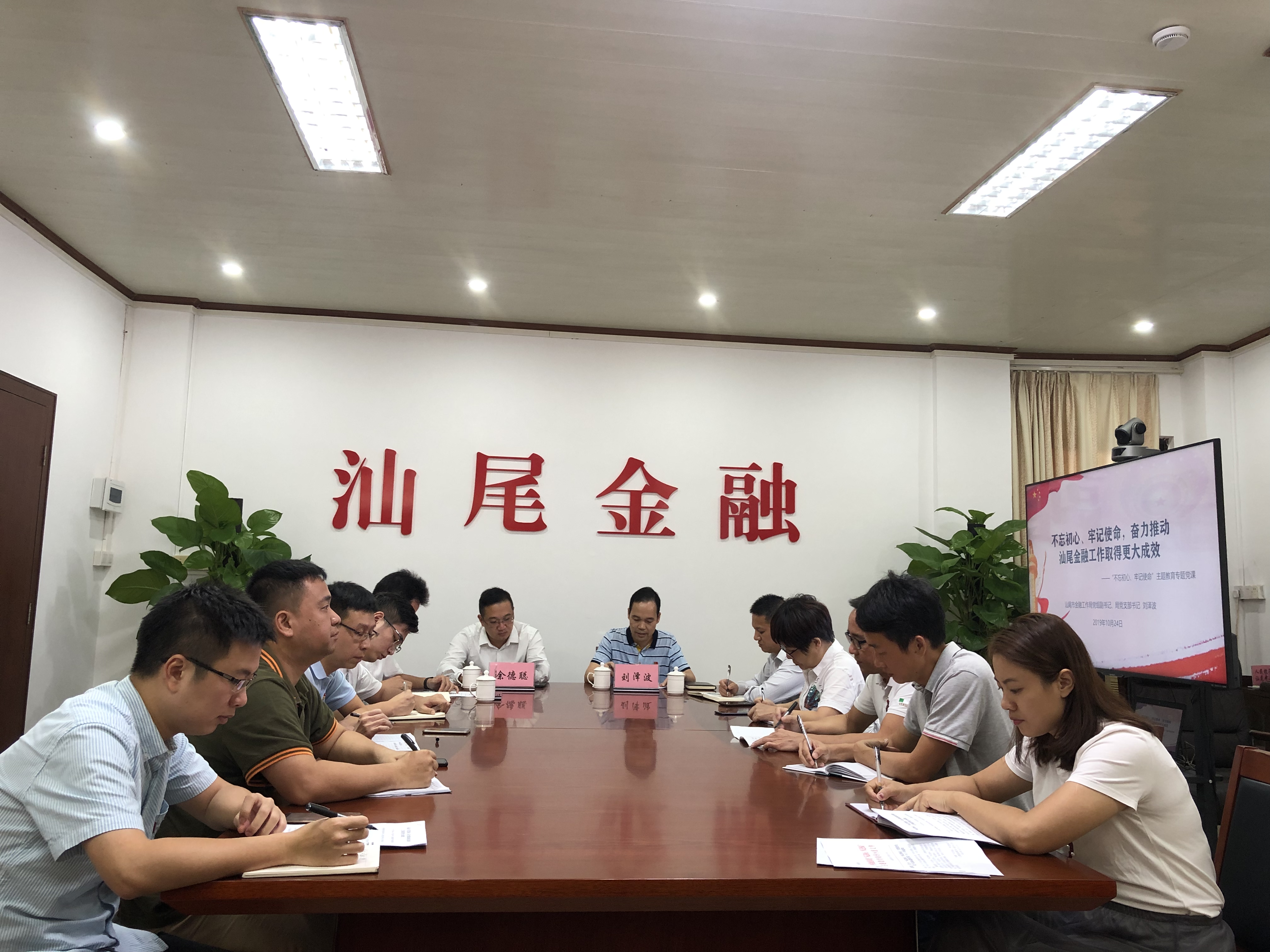 20191024日,按照汕尾市委不忘初心、牢记使命主题教育要求,汕尾市金融工作局在局会议室举办“不忘初心、牢记使命”主题教育专题党课,局党组主要负责人、局党支部书记刘泽波结合近段时间调研工作,为全局党员干部作题为“不忘初心、牢记使命,奋力推动汕尾金融工作取得更大成效”的专题党课。汕尾市委“不忘初心、牢记使命”主题教育第八指导组出席。