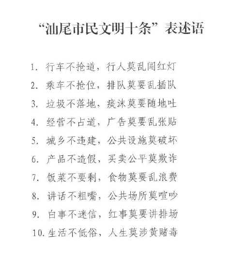 汕尾市民文明十条