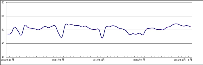 图1 2012年10月-2017年4月广东省重点企业PMI趋势图