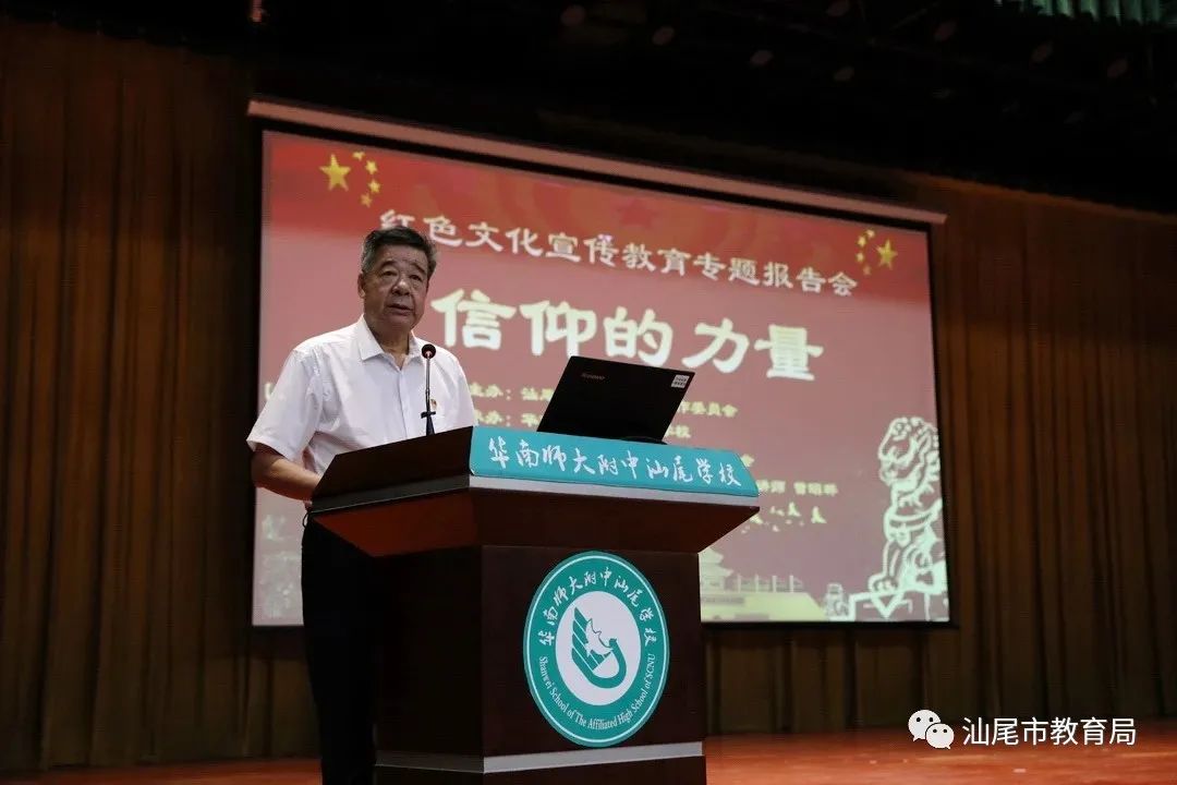 为进一步传承红色基因,弘扬民族精神,激发师生爱国热情,10月21日,汕尾市关工委组织“五老”讲师团在华南师大附中汕尾学校开展了一场红色文化宣传教育专题报告——《信仰的力量》。