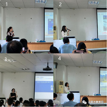 本次培训安排示范课、说课等教学活动,共有13位老师执教公开课和说课。其中,我市海丰县公平中学七年级教师张建炉与北师大团队特邀教师黄丽华精心准备了同课异构示范课《海洋与陆地的变迁》;陆丰河西中学八年级教师林美琼示范教学《土地资源》一课;城区捷胜中学八年级教师甘蕾蕾等10位老师分别进行了说课展示。各场教学活动均进行课后研讨交流,气氛热烈。北师大教研团队专家何亚琼、黄丽华对几位老师的讲课说课都给予客观中肯的点评,与大家分享自己的教学教研经验,提出教学意见建议。