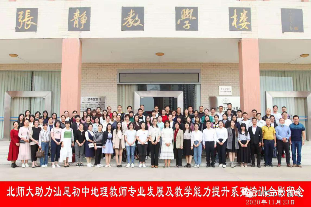 为深入推进我市课堂教学改革,不断提高课堂教学实效,促进全市初中地理教学质量的进一步提升,11月23-24日,北京师范大学助力汕尾初中地理教师专业发展及教学能力提升系列培训在汕尾市城区田家炳中学举行。北师大助力汕尾基础教育提升项目教研团队成员、学科骨干教师共95人参加。