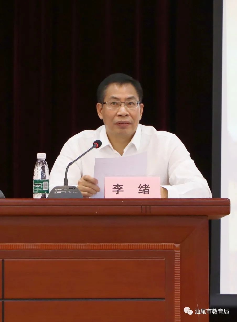 李绪指出,全市教育系统要把学习贯彻习近平总书记出席深圳经济特区建立40周年庆祝大会和视察广东重要讲话重要指示精神暨学习贯彻党的十九届五中全会精神作为当前和今后一个时期的头等大事和首要政治任务,认真学习领会精神,增强“四个意识”、坚定“四个自信”、做到“两个维护”,把思想和行动统一到总书记、党中央的决策部署上来,不断推动总书记重要讲话、重要指示精神和全会精神在全市教育系统落地生根、结出丰硕成果。李绪强调,提高政治站位、学深弄懂悟透,深刻理解习近平总书记重要讲话重要指示精神和十九届五中全会精神的精神实质和丰富内涵;二要全系统动员部署、全覆盖学习领会,切实推动全市教育系统传达学习贯彻工作取得真正成效;三要精准对标对表、紧密结合实际,科学编制好汕尾教育“十四五”规划;永葆“闯”的精神、“创”的劲头、“干”的作风,全力推进汕尾教育高质量跨越式发展。