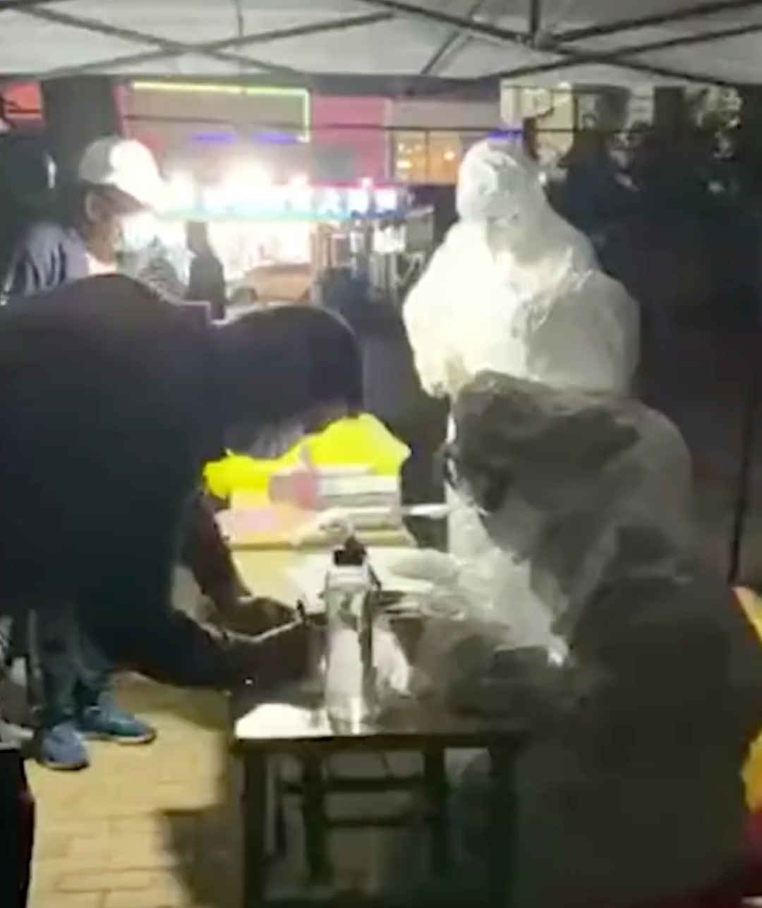 △11日晚,青岛不少社区通知小区居民进行免费核酸检测,部分市民夜间排队等待做检测。