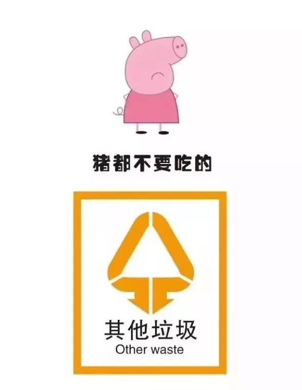 其他垃圾,指除可回收物、有害垃圾、餐厨垃圾外的其他生活垃圾,即现环卫体系主要收集和处理的垃圾,包括但不限于以下废弃物:(一)纸类、塑料类、玻璃类、金属类废弃物中不可回收的部分,如使用过的餐巾纸,被污染的食品包装盒。(二)纺织类、木竹类废弃物中不可回收的部分,如拖把、抹布、牙签、一次性筷子、树枝等。(三)灰土类、砖瓦陶瓷类废弃物、其他混合垃圾,如清扫渣土、陶瓷碗碟、大块骨头、植物硬壳、枯萎花草等。佩奇一句话,总结其他垃圾: