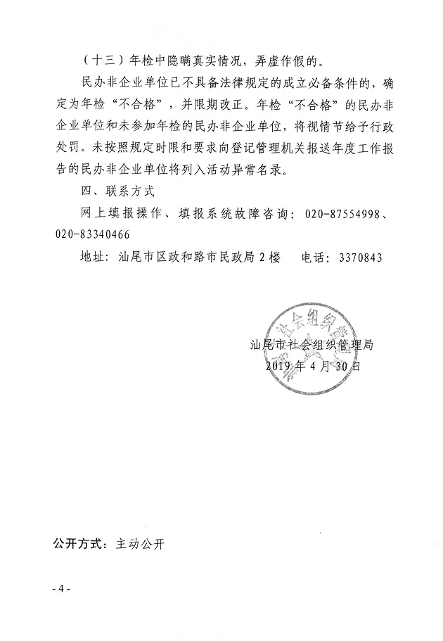 汕尾市民政局关于开展全市性民办非企业单位2018年年度检查的通知
