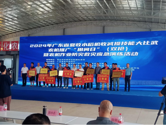 6月27日,我市组队参加2024年广东省夏收水稻机收减损技能大比武、农机推广“田间日”(双抢)暨农机作业防灾救灾应急演练活动,两名参赛选手荣获二等奖和三等奖。