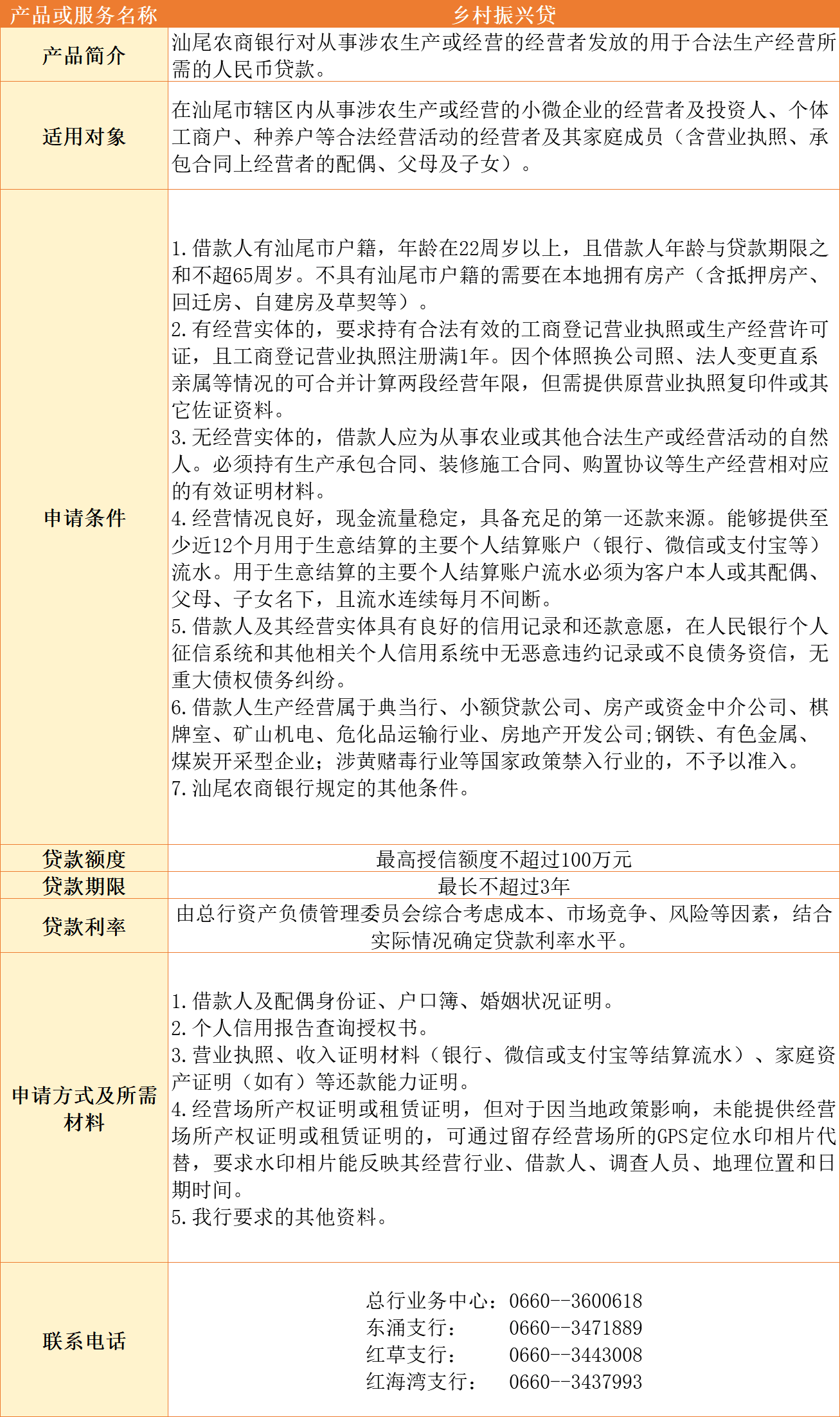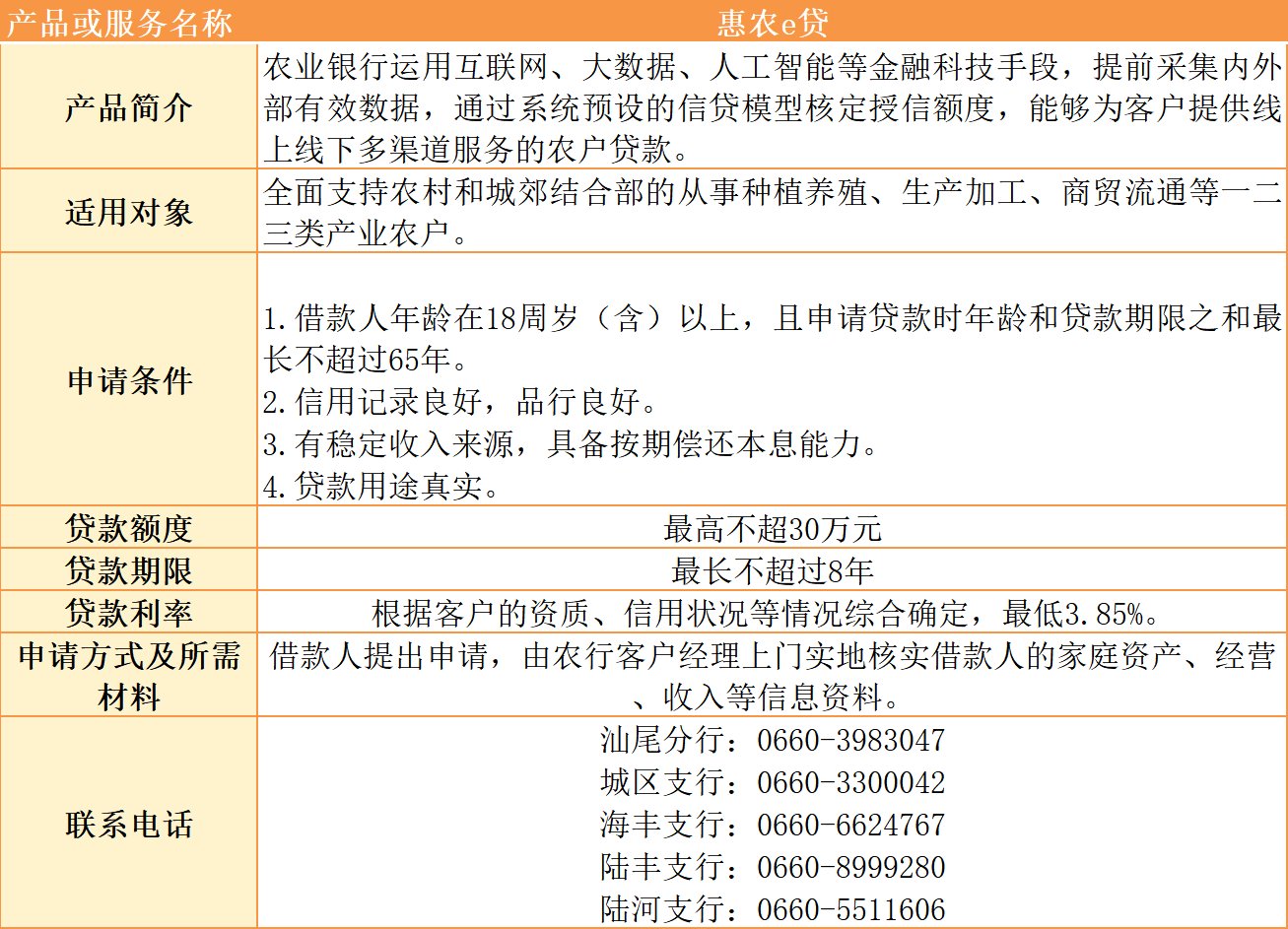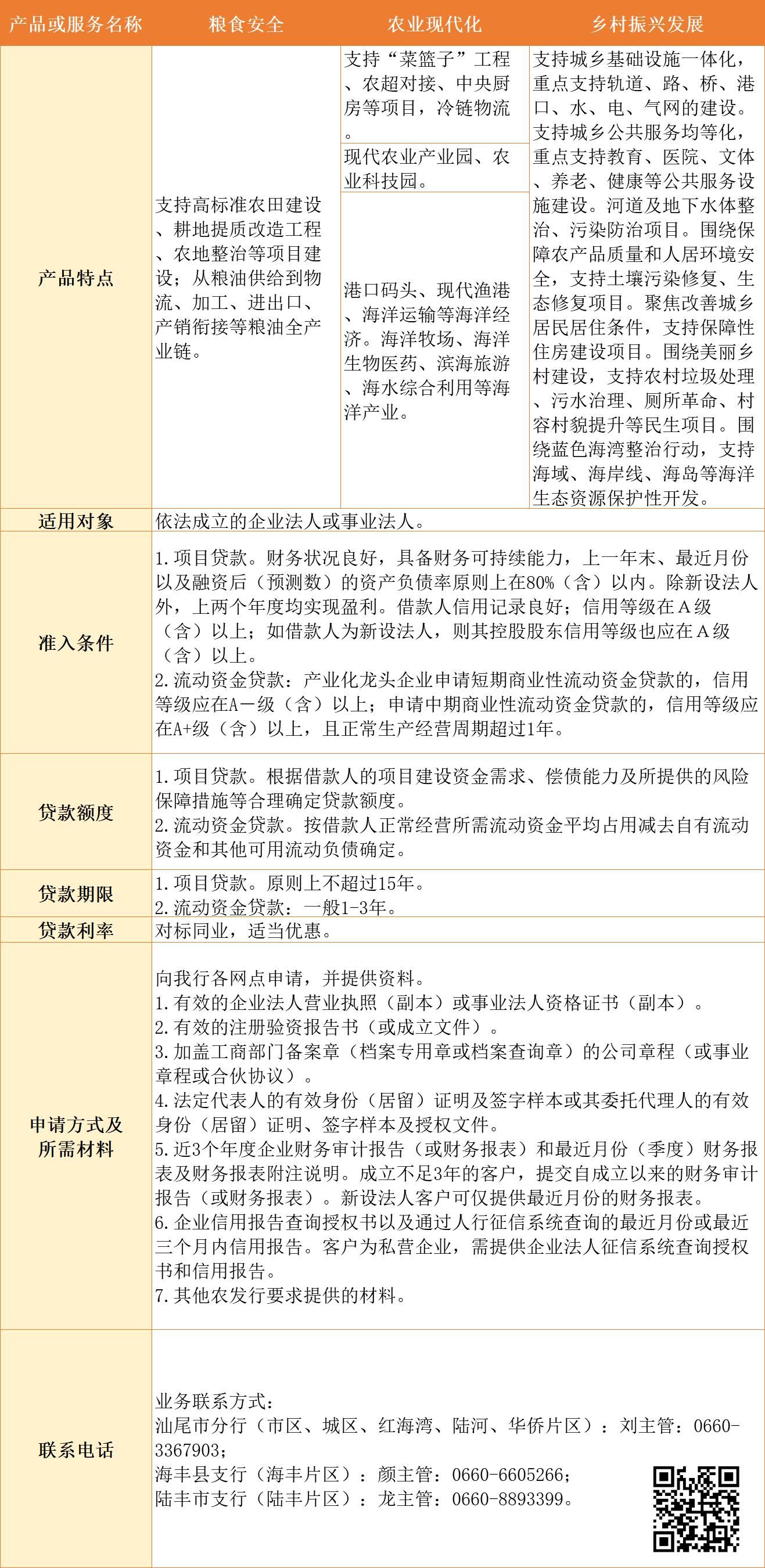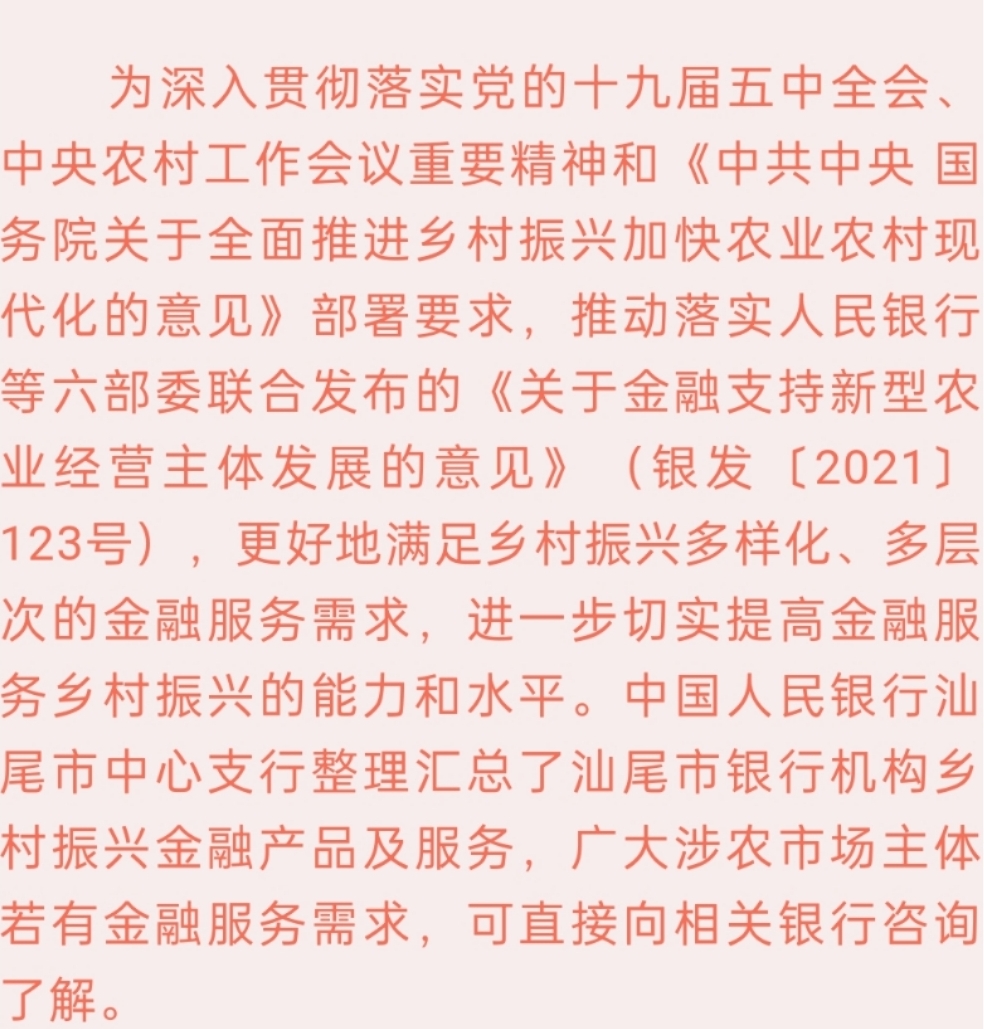汕尾市银行机构乡村振兴金融产品及服务汇编