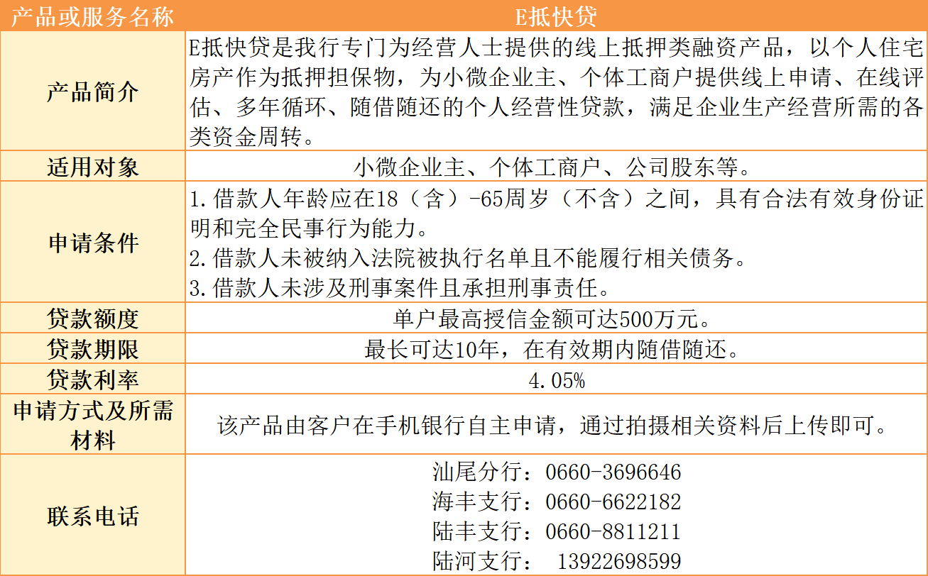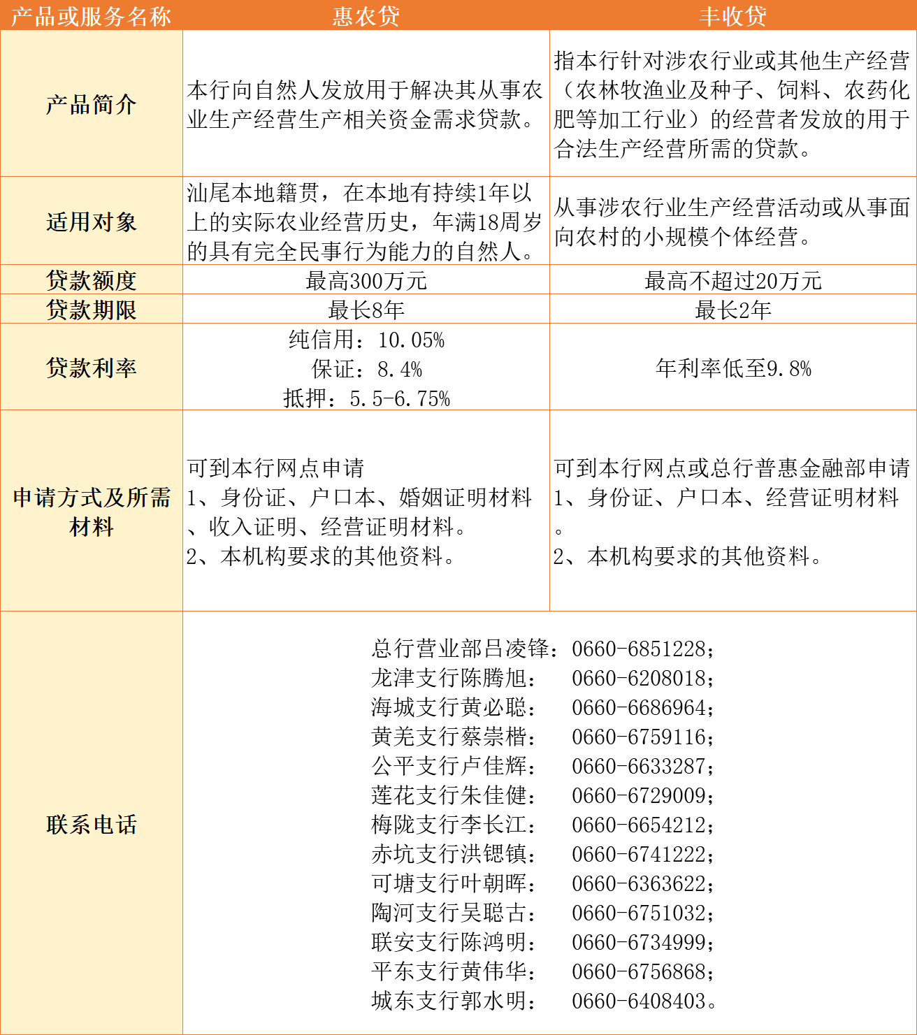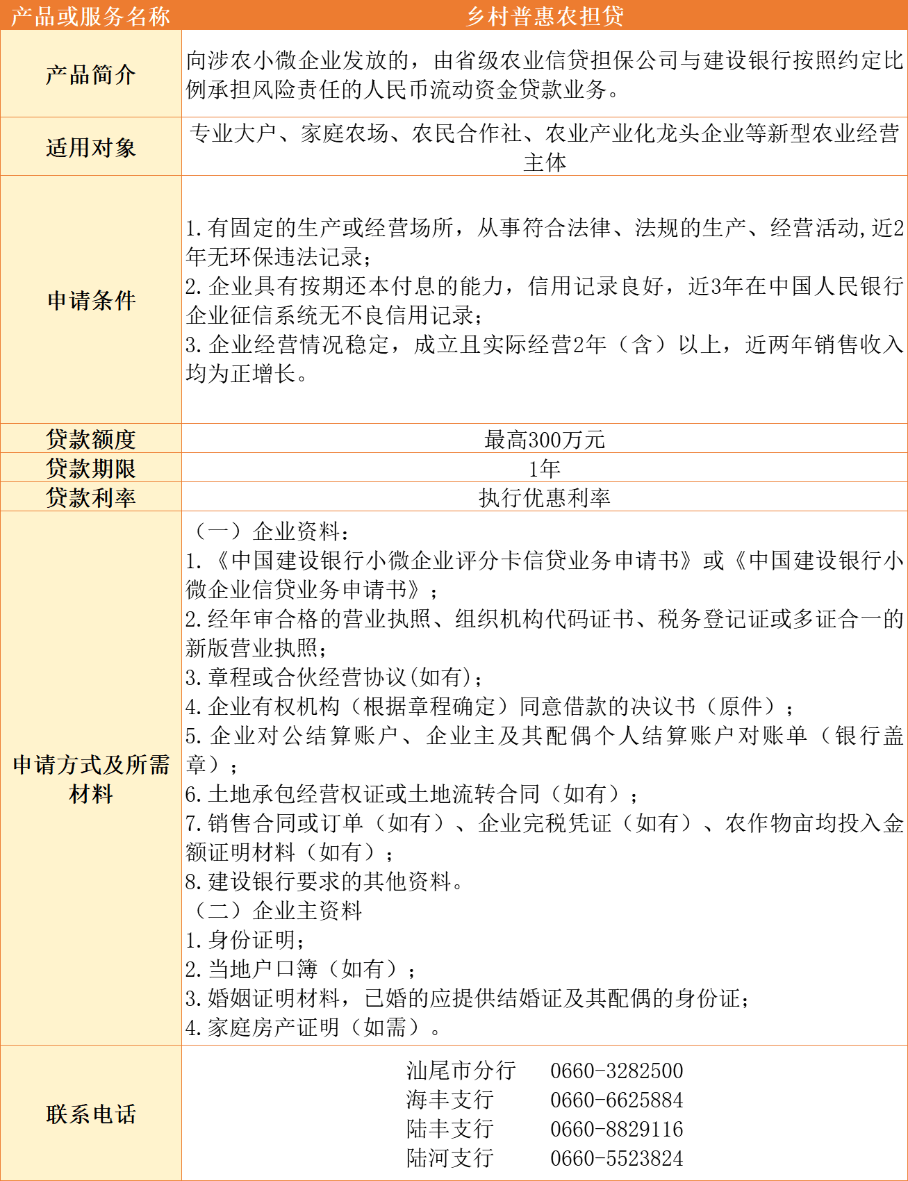 汕尾市银行机构乡村振兴金融产品及服务汇编