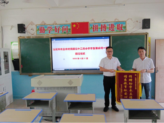 8月31日,秋季新学期开学临近,一场简短的捐赠仪式在陆丰市金厢镇十二岗小学举行。汕尾市农业农村局向十二岗小学捐赠了一批崭新的课桌椅,进一步改善学生学习条件,助力乡村教育事业良好发展。这批崭新的课桌椅的到来,给新学期学生提供了优质的学习条件。