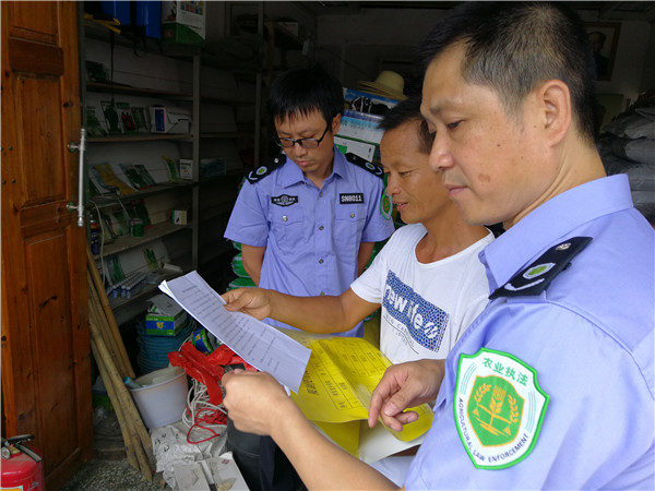 执法人员现场对经营者讲解了禁限用农药知识,让经营户了解在蔬菜、果树、茶叶、中草药材等不得使用和限制使用的农药,认识到如果高毒残留的农药长时间使用会影响防治效果,也会影响农产品的质量,直接关系到农产品质量安全。本次宣传工作共派出宣传材料15份。
