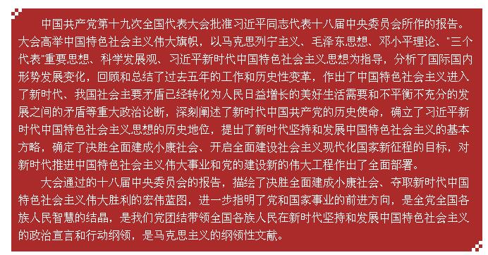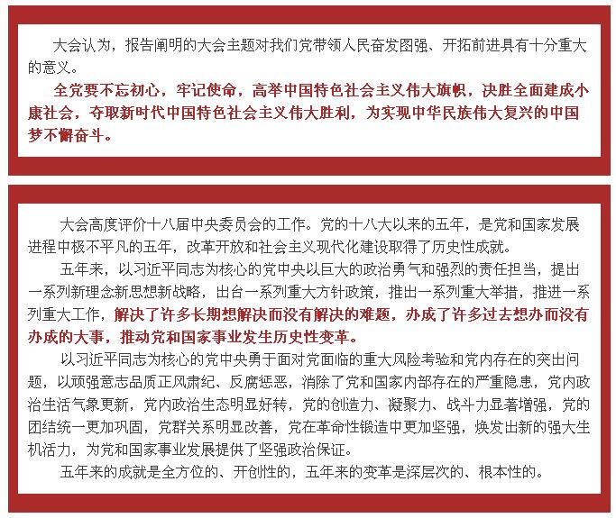 中国共产党第十九次全国代表大会关于十八届中央委员会报告的决议