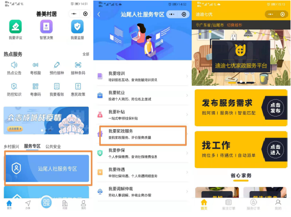 善美村居上线的“家政服务”模块为汕尾市有家政服务需求的雇主及家政服务人员提供一站式高效便捷的平台,促进供需对接。今后,汕尾市人社局将继续完善和优化“善美村居”的家政板块,深化家政服务与善美村居应用场景设计,打造数字政府家政服务专区。