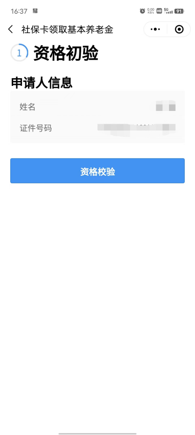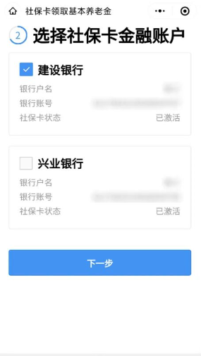 第二步:点击“开始办理”,就会进入“资格初验”界面,核验个人信息后选择一个社保卡金融账户,点击“下一步”,核对完社保卡金融账户信息后,点击“确认提交”即可。