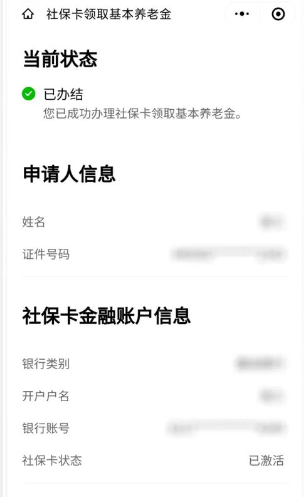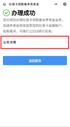 第三步:办理成功后,养老金将发送至您的社保卡金融账户。点击“业务详情”即可查看当前业务状态。