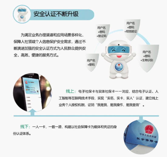 为满足业务办理渠道和应用场景多样化,保障人社领域个人信息保护安全需求,通过不断演进加强的安全认证方式为人民群众提供安全、高效、便捷的服务方式。