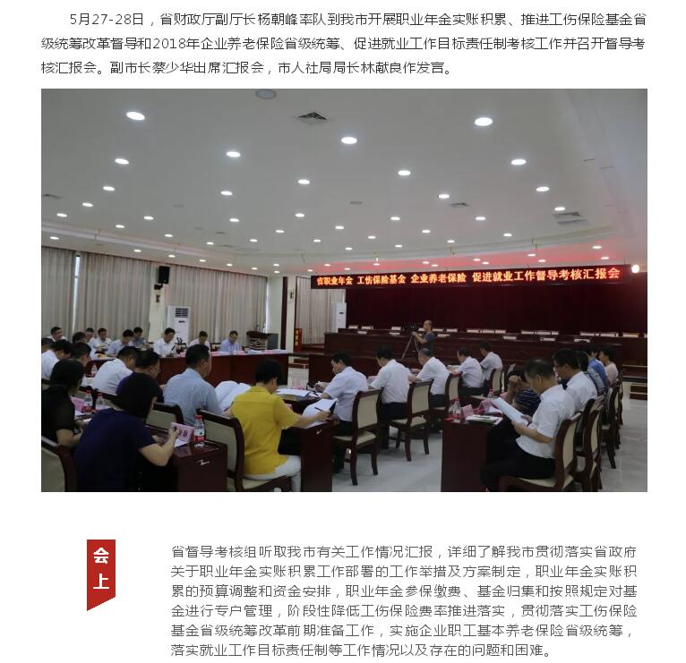 省督导考核我市职业年金实账积累、工伤保险基金、企业养老保险省级 统筹、促进就业工作