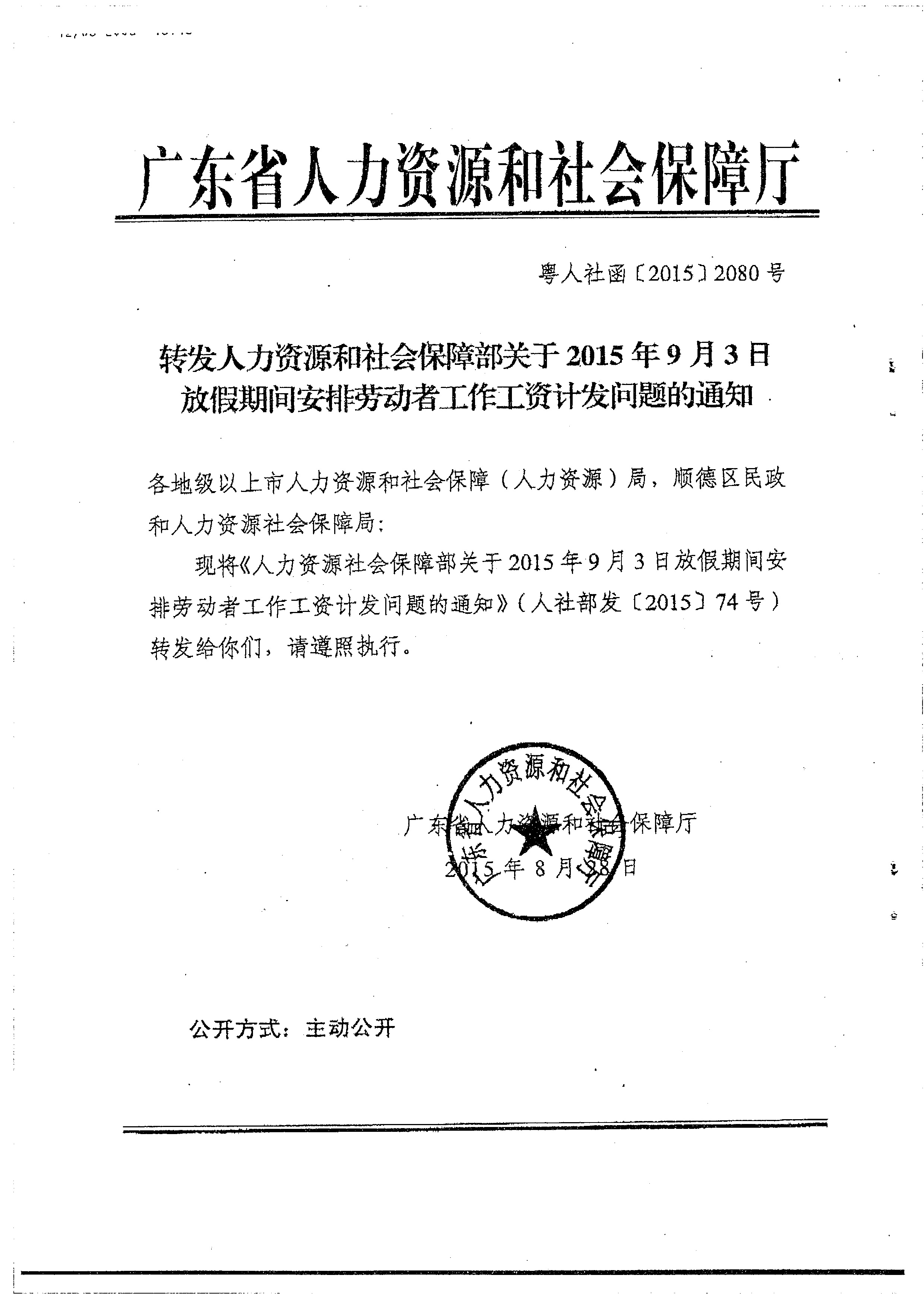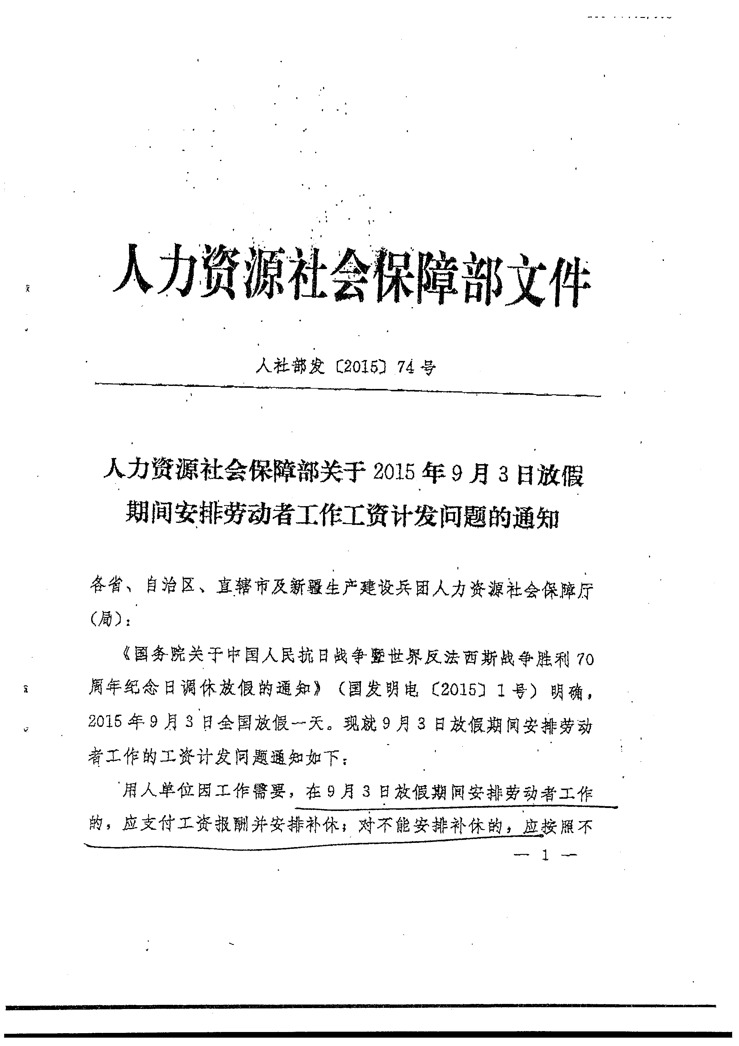 9月3日放假期间安排劳动者工作工资计发问题的通知