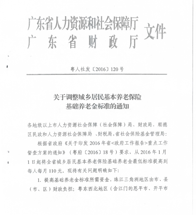 转发关于调整城乡居民基本养老保险基础养老金标准的通知