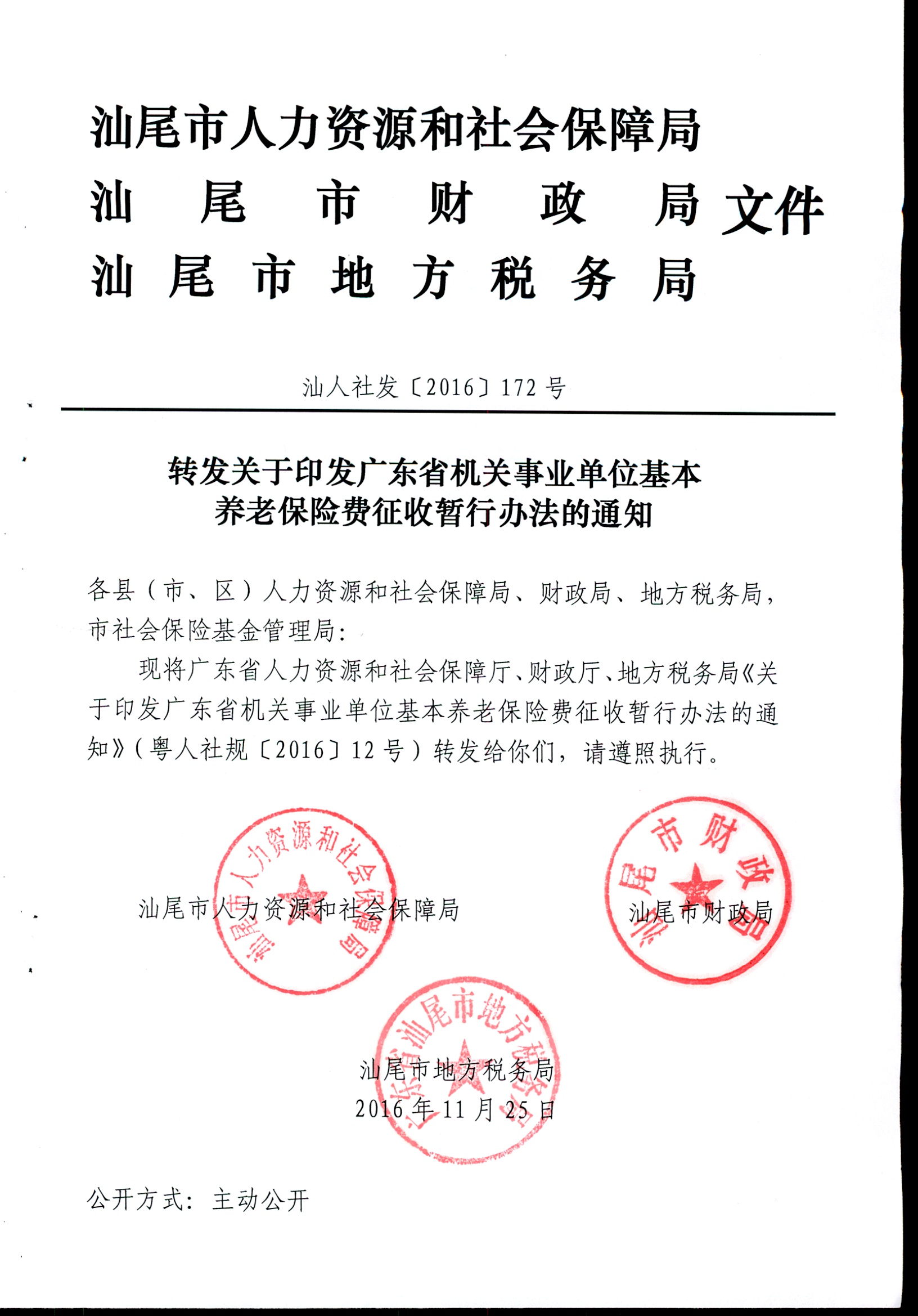 转发关于印发广东省机关事业单位基本养老保险费征收暂行办法的通知