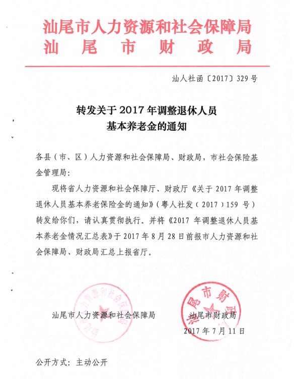《关于2017年调整退休人员基本养老金的通知》(粤人社发【2017】159号) (1).pdf
