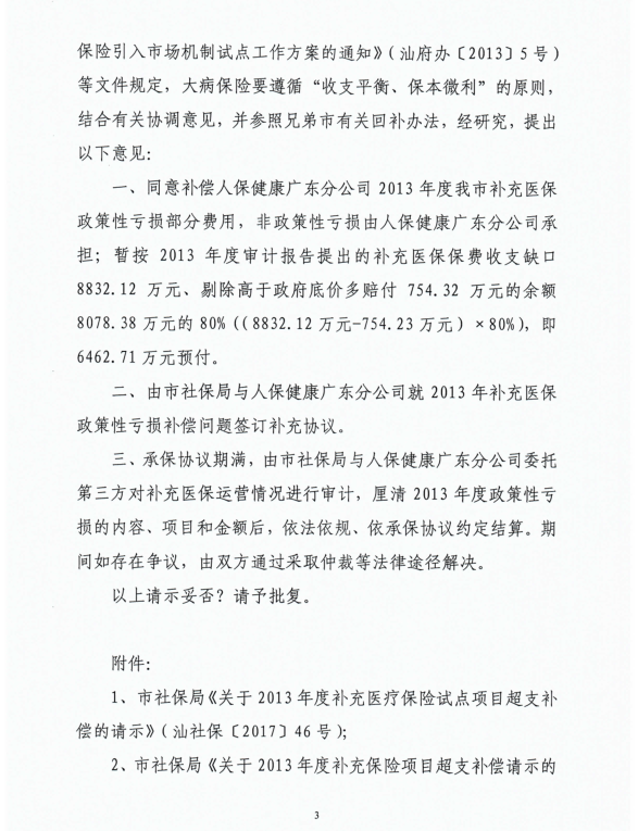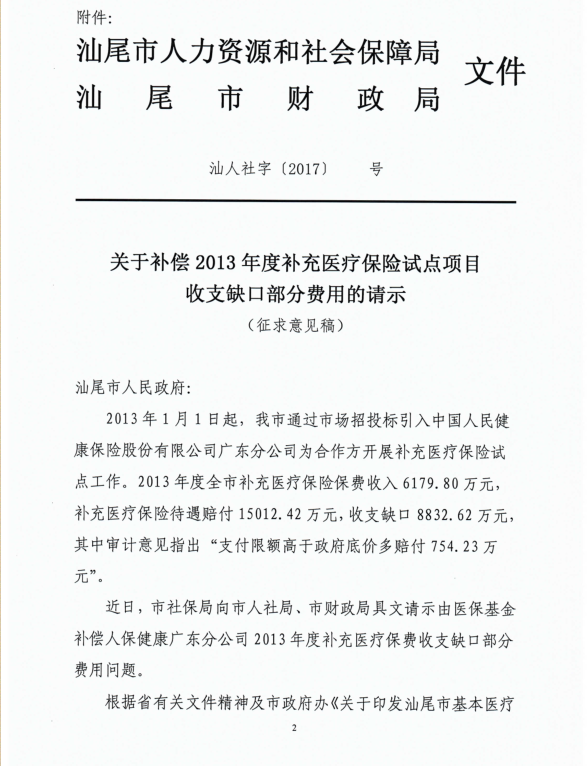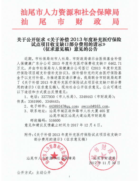 公开征求2013年度补充医疗保险试点项目收支缺口部分费用的公告