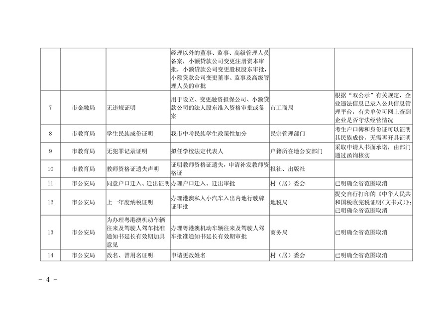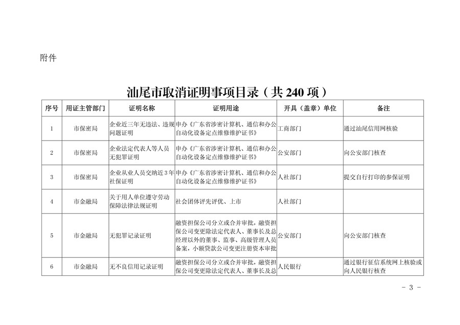 汕尾市人民政府关于公布汕尾市取消证明事项目录的通知