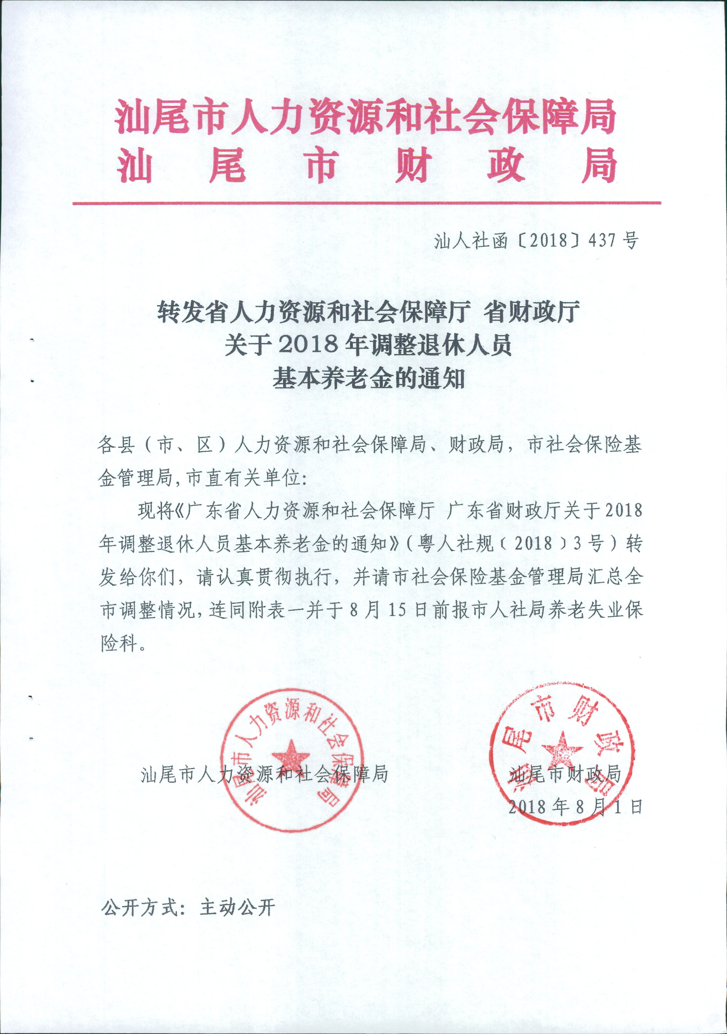 转发省人社厅省财政厅关于2018年调整退休人员基本养老金的通知