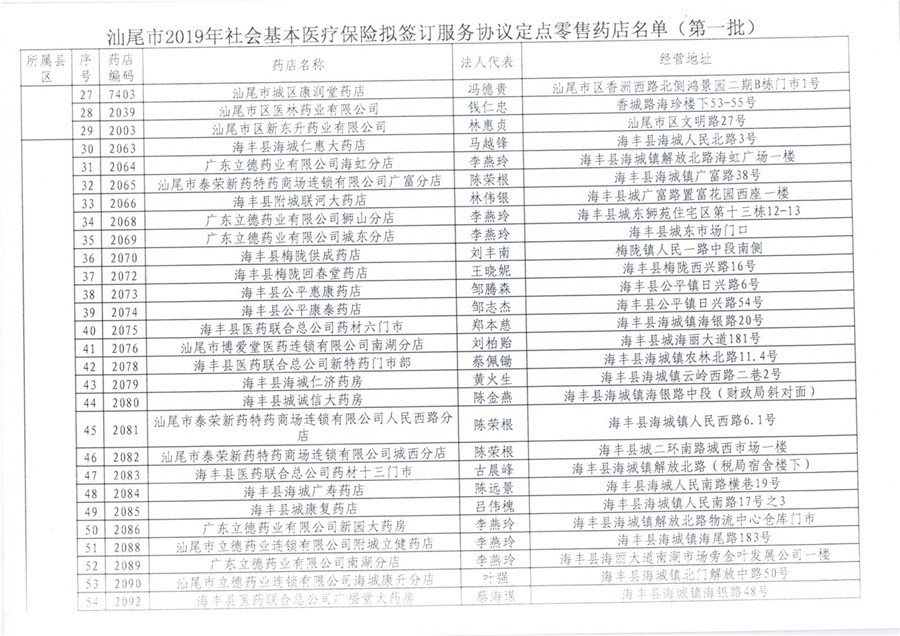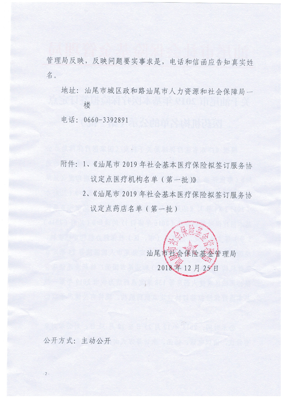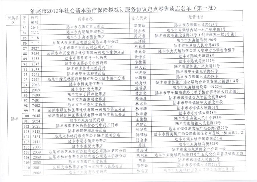 关于汕尾市2019年基本医疗保险拟签订定点医药机构名单的公示(第一批)