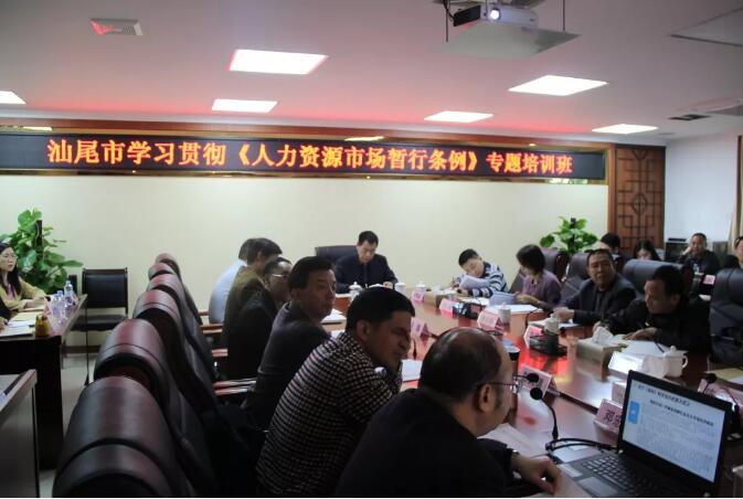 12月25日下午,市人社局举办全市学习贯彻《人力资源市场暂行条例》专题培训班,传达学习贯彻党的十九大对人力资源市场工作提出的新任务新要求,详细解读《人力资源市场暂行条例》,认真贯彻实施《人力资源市场暂行条例》,大力培育人力资源市场,加强人力资源市场监管,谋划促进人力资源服务业发展的工作思路和举措。市人社局就业促进科、劳动保障监察支队、市就业中心、市人才办负责同志,各县(市、区)人社局分管人力资源市场工作的领导、就业促进股、劳动监察大队、就业中心、人才办负责同志共30多人参加会议。