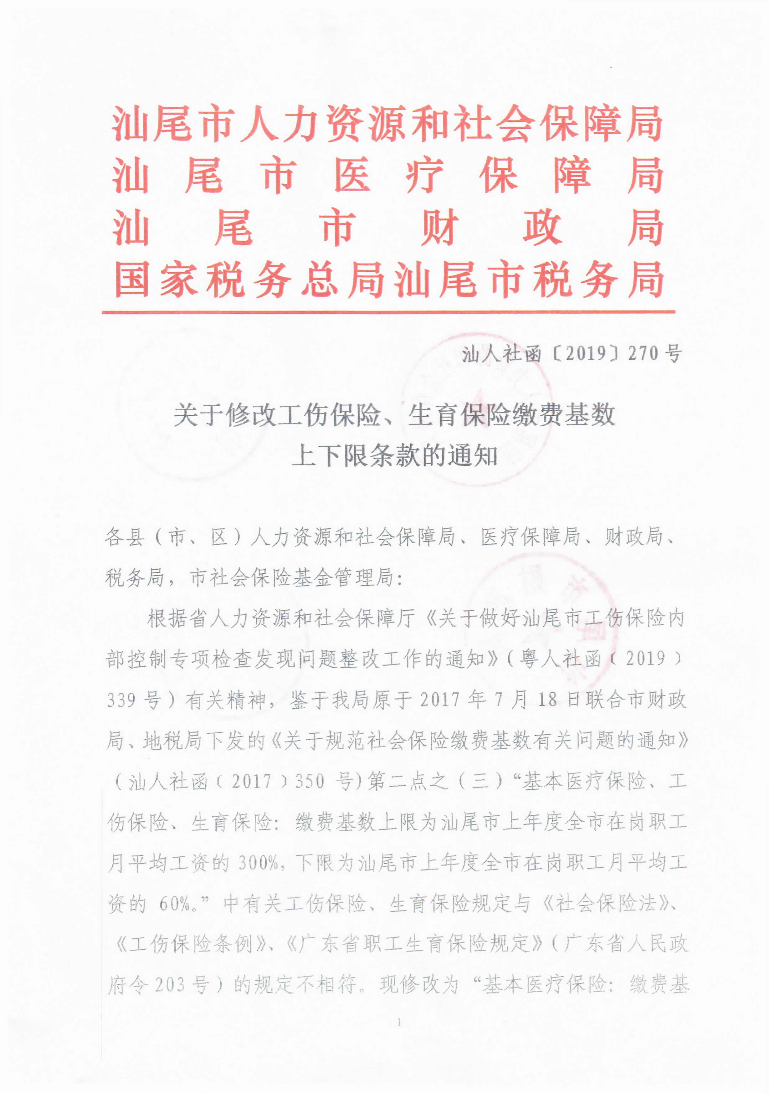 关于修改工伤保险、生育保险缴费基数上下限条款的通知