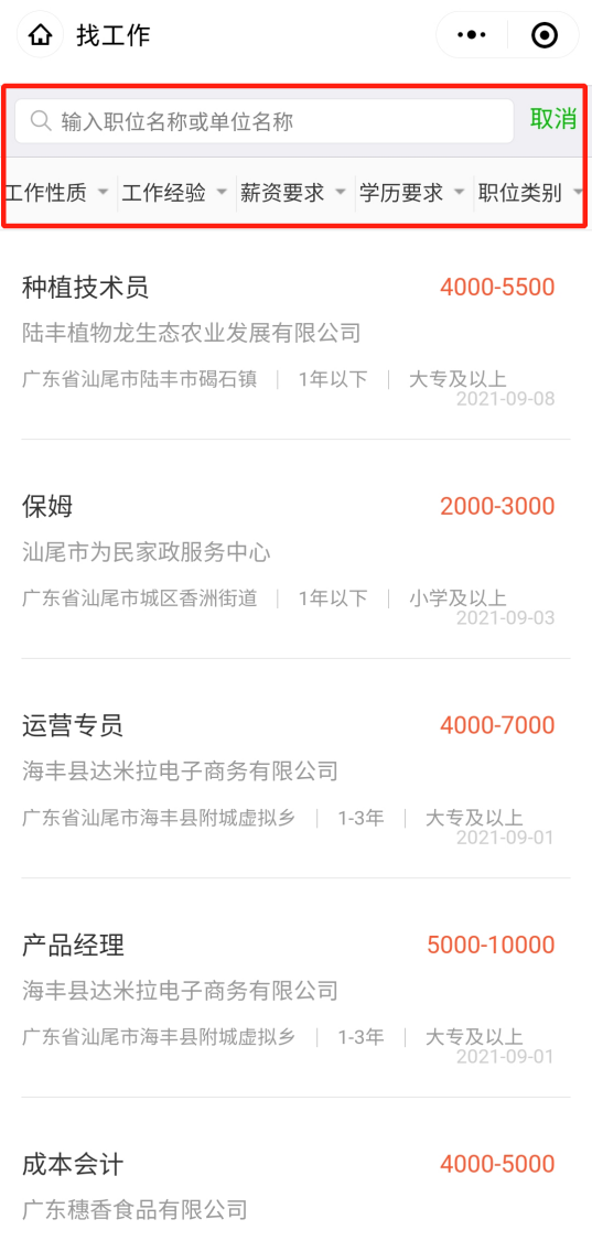 【步骤二】求职者可通过筛选工作经验、薪资要求和学历要求等条件,查找符合要求的工作岗位,或直接输入关键字查找具体岗位或者企业。