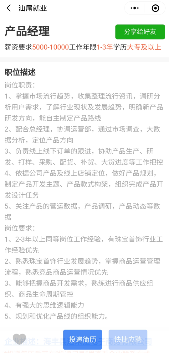 【步骤三】选择心仪的岗位,点击岗位名称,即可查看所选岗位的详细信息。