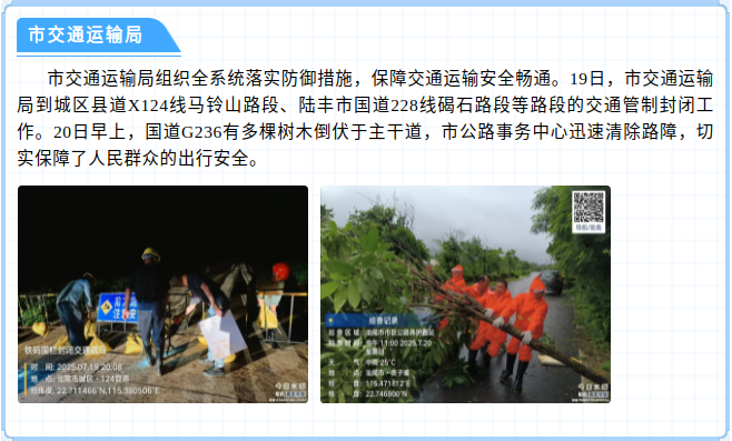 汕尾市各地各部门积极开展防风抢险救援工作