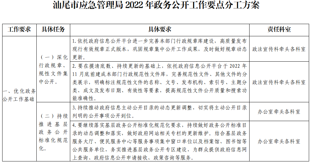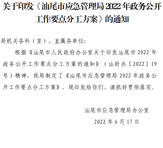 (汕应急办〔2022〕66号)关于印发《汕尾市应急管理局2022年政务公开工作要点分工方案》的通知