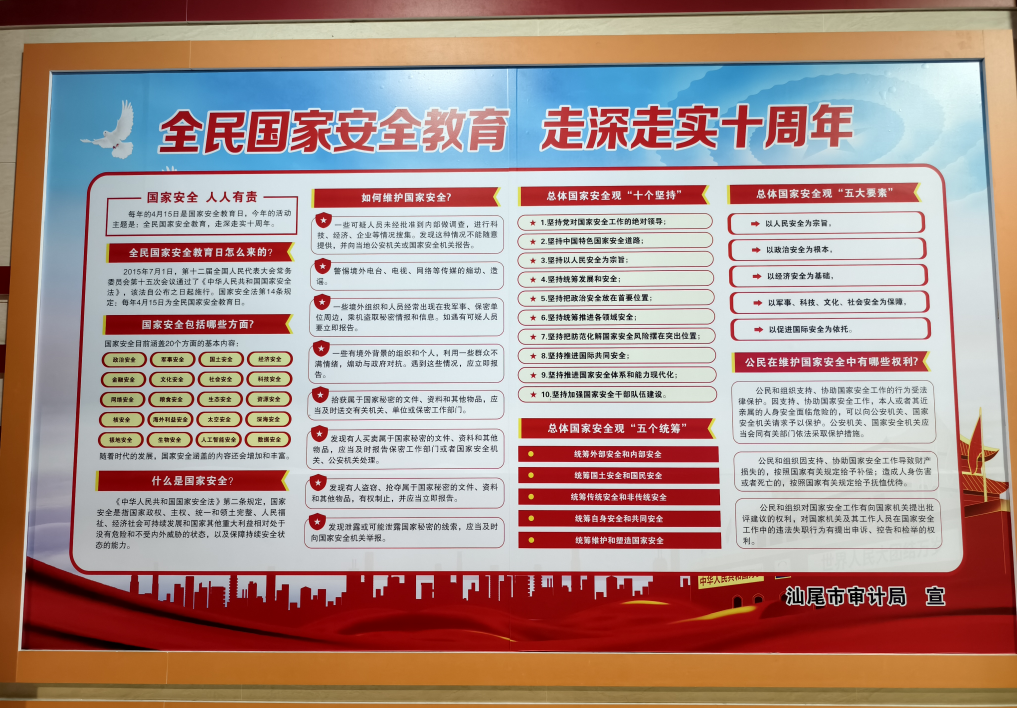 国家安全,重如山岳,稳似磬石。为贯彻落实习近平总书记关于加强国家安全教育的重要指示精神,切实增强全民国家安全意识,充分汇聚起维护国家安全的强大力量,市审计局紧扣第十个“全民国家安全教育日”节点,通过多种方式和渠道,组织开展国家安全教育普法宣传活动,强化审计干部国家安全意识,将国家安全理念融入日常、落在实处,以审计之为服务安全发展大局。