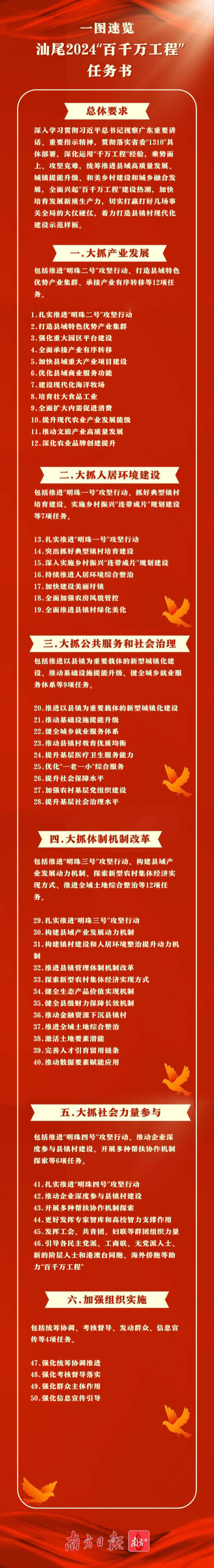 六大方面50项重点工作,2024年汕尾“百千万工程”任务书都有哪些干货?南方+带您一图速览!