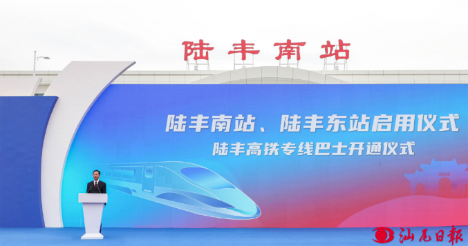 “汕汕”新时代,齐心向未来!12月26日,汕汕高铁汕尾至汕头南段开通运营。当天上午,我市“坐着高铁来赶海 齐心聚力百千万”庆祝汕汕高铁开通系列活动启动仪式在陆丰南站站前广场举行。省委主题教育第九巡回督导组组长杨汉卿、副组长郭伍毅应邀出席。市委副书记、市长郑海涛出席仪式并宣布汕汕高铁陆丰南站、陆丰东站正式启用,市委常委、常务副市长黄志坚致辞。