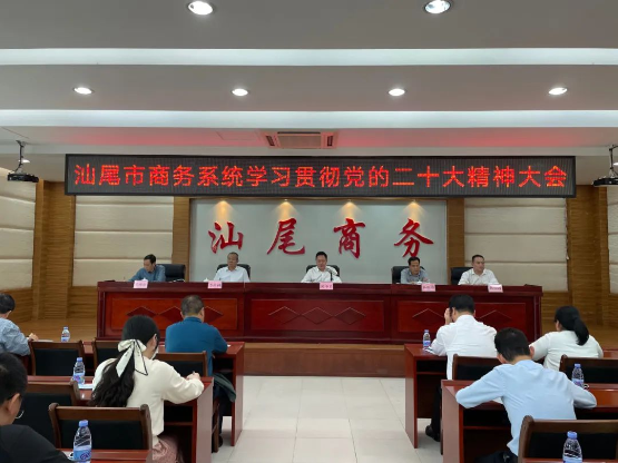 11月4日,汕尾市商务局召开全市商务系统学习贯彻党的二十大精神大会,传达贯彻党的二十大精神,落实习近平总书记、党中央决策部署,按照省委、市委工作安排,对全市商务系统做好学习宣传贯彻落实工作进行动员部署。市商务局党组书记、局长陈本才同志主持会议并讲话。