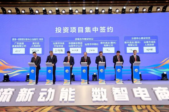 在发布仪式环节,深圳综合开发研究院、中国邮政汕尾分公司、中国电信国际公司分别介绍物流产业方案、景区邮局、跨境电商专线。