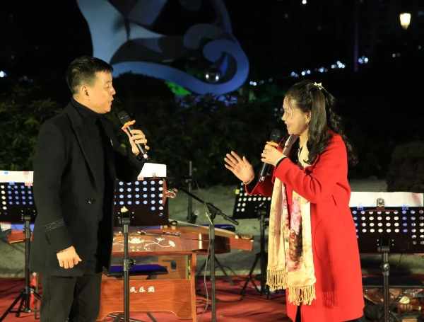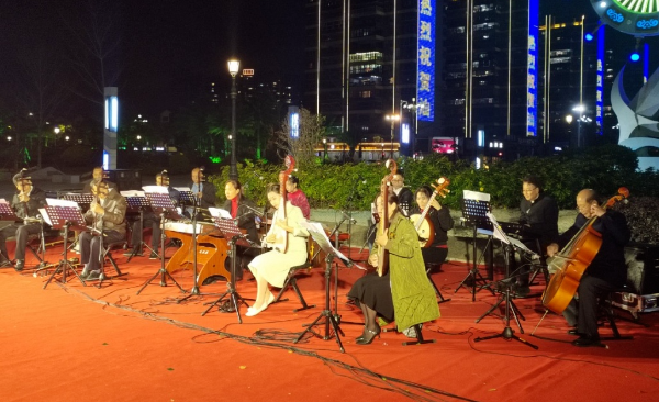 品清湖畔文化志愿服务活动首场演出,由汕尾市文化馆文化志愿者民乐团拉开序幕。