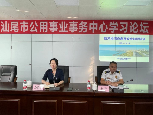 7月25日下午15时,市公用事业事务中心在中心二楼会议室召开防汛排涝应急及安全知识培训。会议由中心主任颜晓宇同志主持,市消防救援支队副支队长徐丰同志培训授课。中心领导班子、部门负责人、市政、园林、照明外业人员及第三方管养单位代表参加了培训。