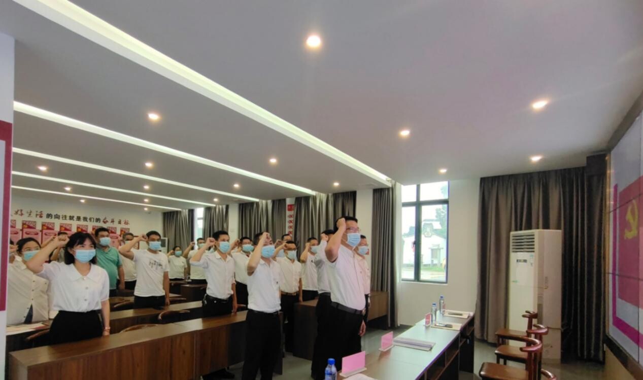 为进一步加强党性教育,强化党员的身份意识和责任意识,更好发挥先锋模范作用,活动组织5月份“政治生日”黄礼寺、黄雅纯同志领读《中国共产党章程》“第五章 党的基层组织”内容,晨洲村党总支书记黄智明、驻村第一书记吴东就向他们送上了政治生日贺卡和生日祝福,参会党员用热烈掌声共同为他们庆祝“政治生日”,并在吴东就同志的领誓下,全体党员面对党旗庄严重温了入党誓词。