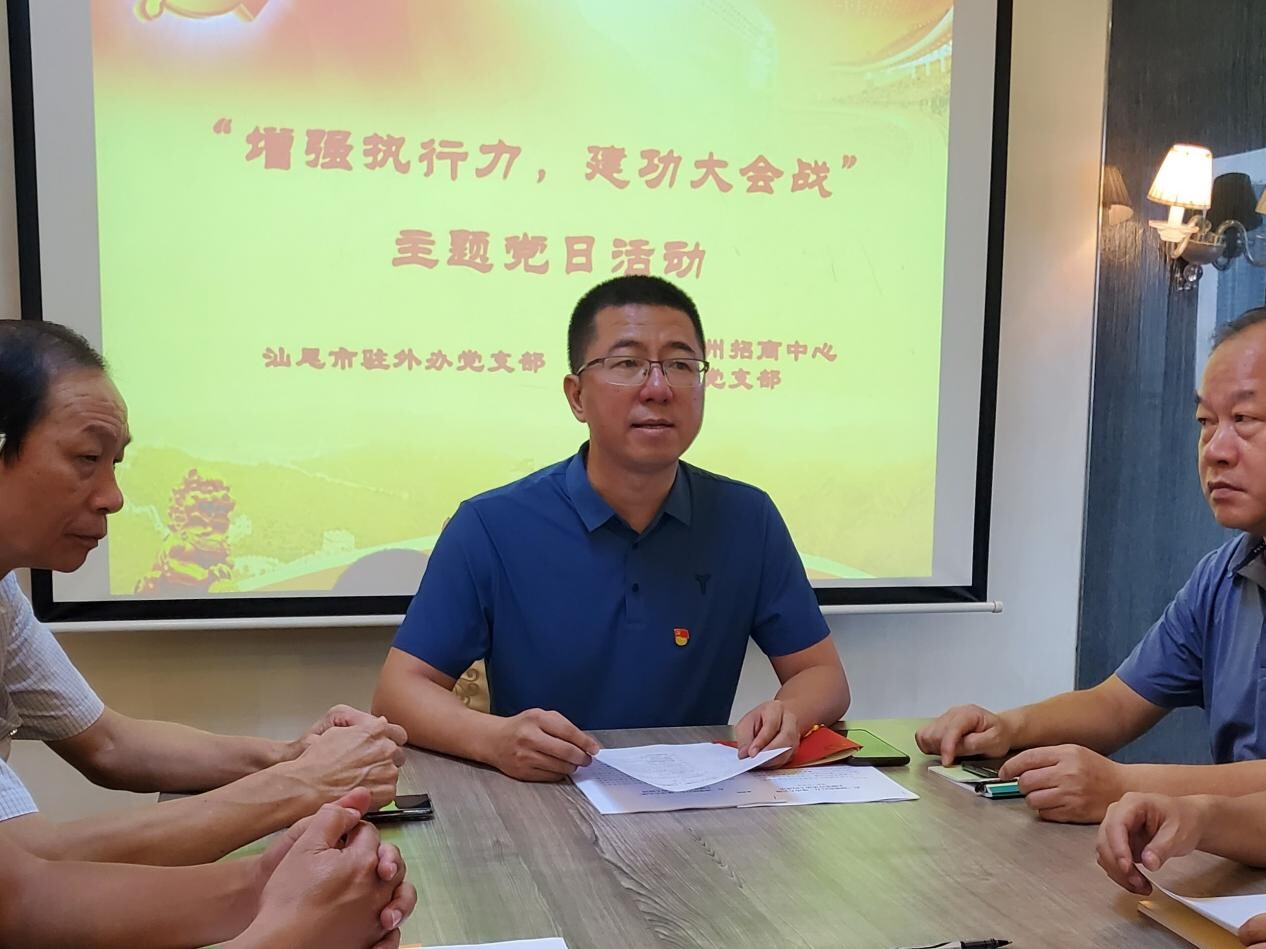 8月31日,市驻外办党支部结合驻地疫情防控实际,采取“线上+线下”、分点实施的形式,联合广州招商中心临时党支部以党建共建形式组织开展了“增强执行力,建功大会战”主题党日活动,办党组书记、主任陈俊雷主持活动,驻地党员干部参加活动。