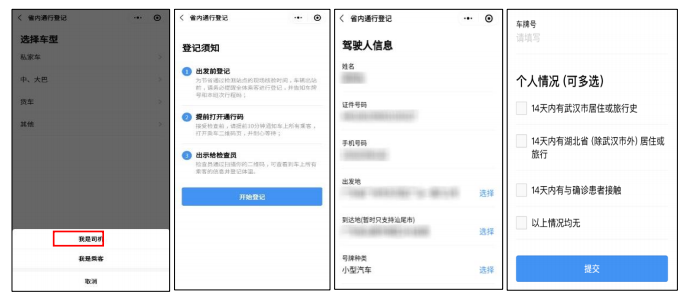 如图:入粤登记界面、车辆信息填写界面、个人信息填写界面