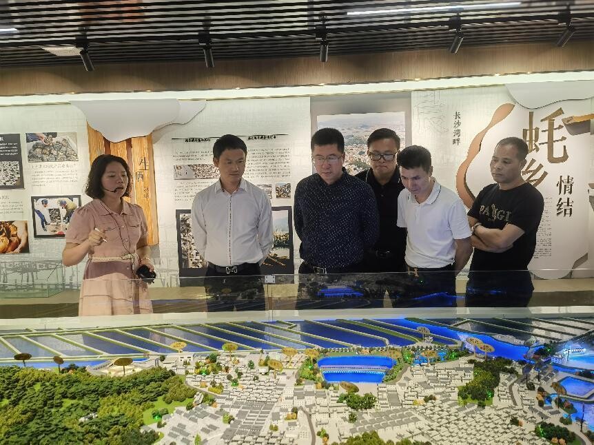 考察团走访红草镇晨洲村蚝乡旅游区和养蚝基地,与镇、村干部座谈,深入学习贯彻党的二十大精神,交流生蚝产销合作。陈俊雷主任详细介绍了汕尾推进“百千万工程”的决策部署和宣传解读相关招商政策,助力晨洲村“百千万工程”和高质量发展。